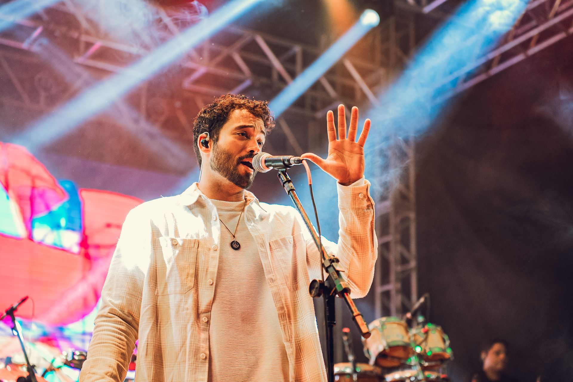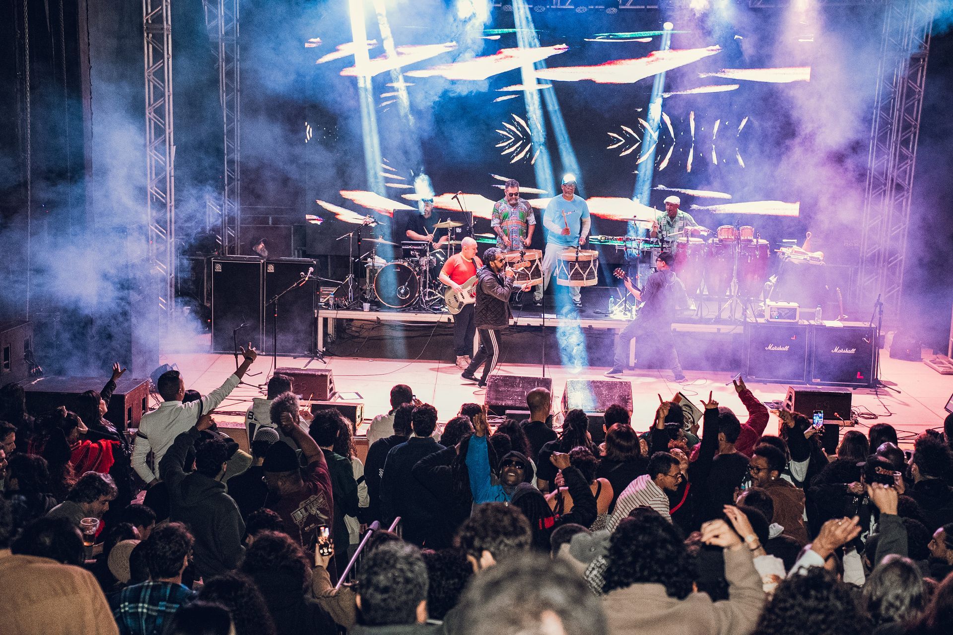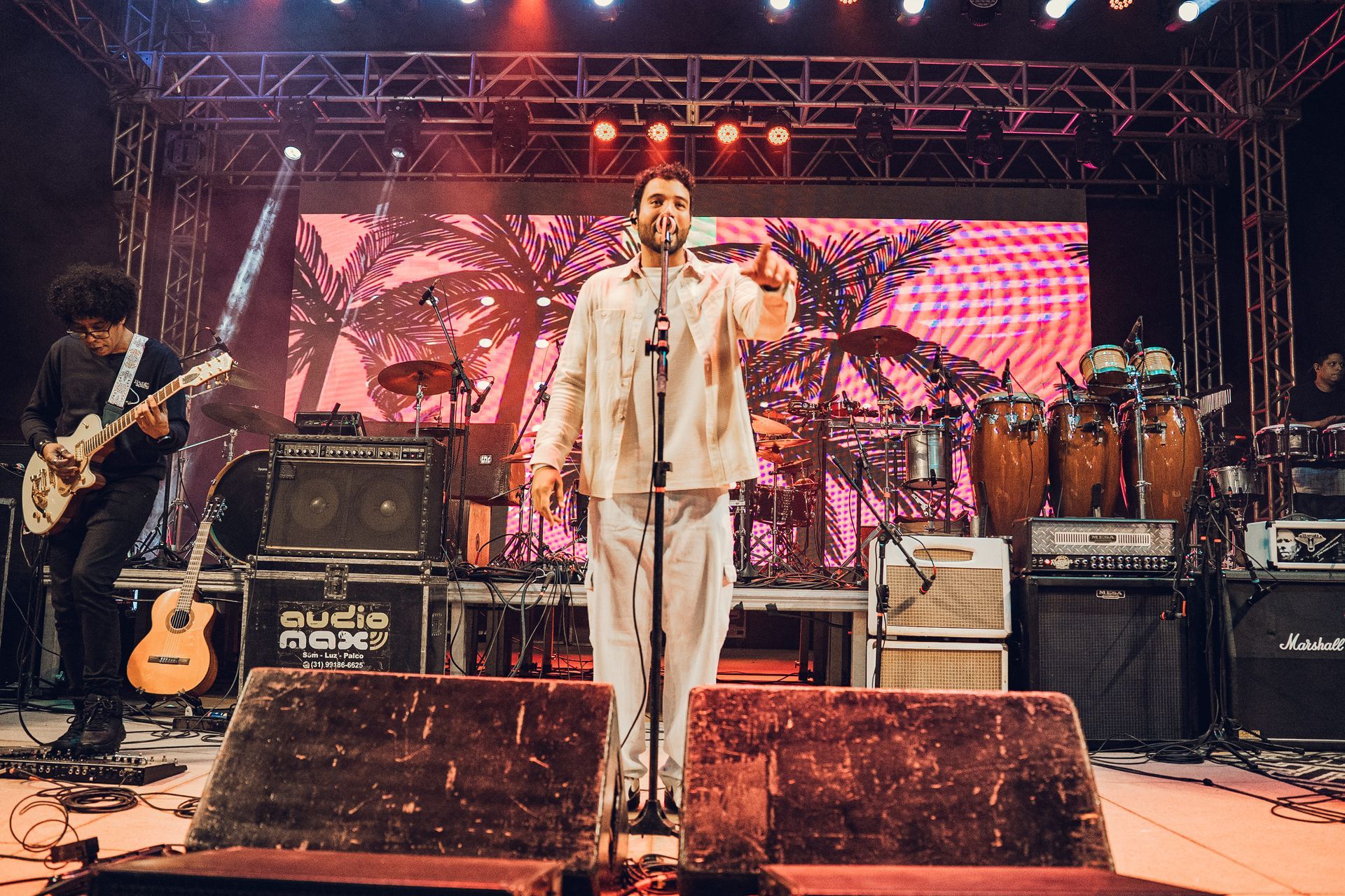 No sábado (5), a banda pernambucana Nação Zumbi incendiou o palco da Concha Acústica com seu inconfundível “Maracatu de Uma Tonelada”. O peso das batidas, a força das letras e a energia vibrante da banda fizeram da apresentação um dos pontos altos do festival até aqui. O público cantou junto, dançou e celebrou uma sonoridade que mistura ancestralidade e contemporaneidade. Na mesma noite, os artistas itabiranos Tizé e Igor Venal mostraram a potência da música feita na cidade.