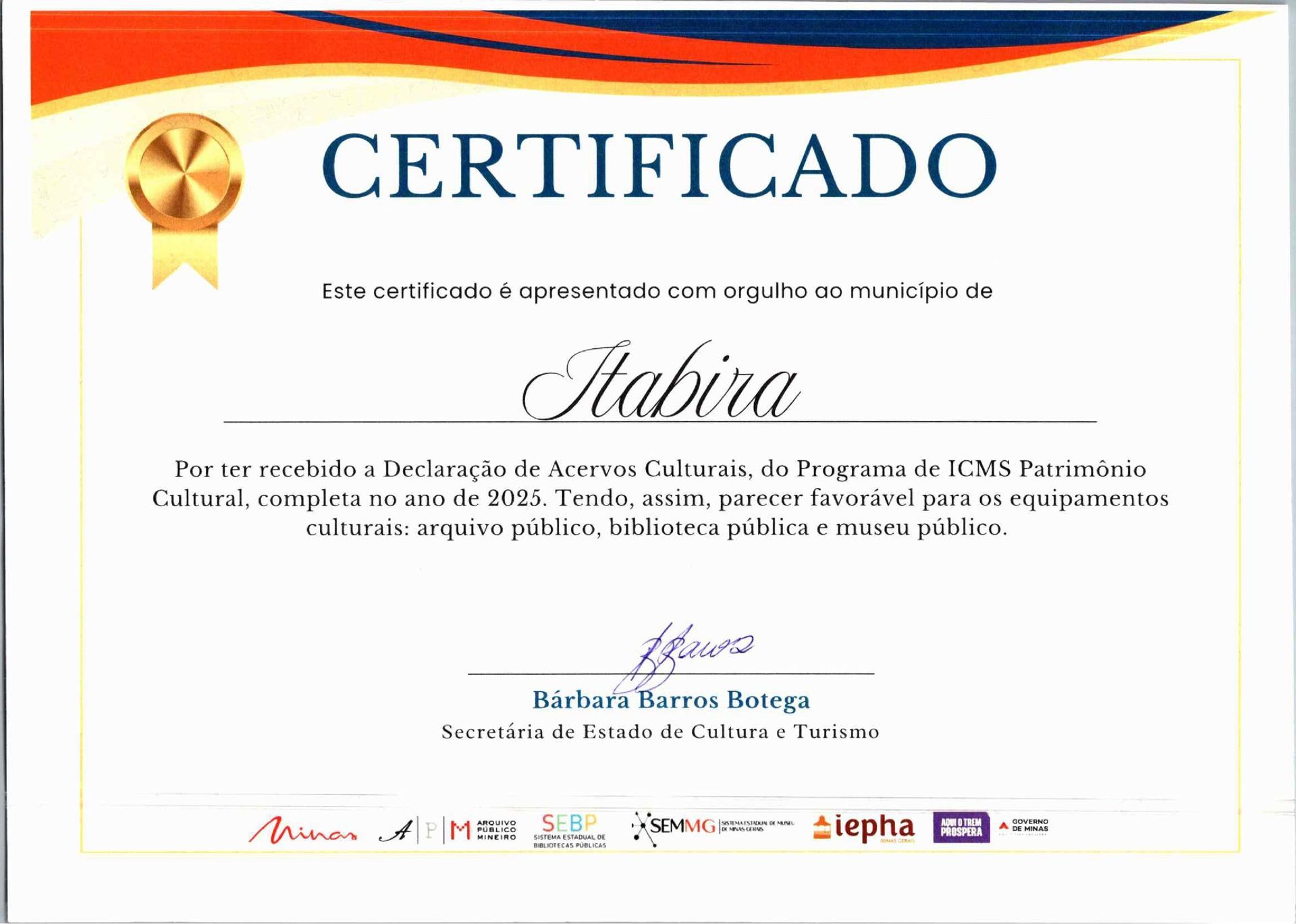 O reconhecimento atesta que Itabira mantém seus acervos organizados conforme diretrizes técnicas estabelecidas pelo Estado, com ações de conservação, acesso público e desenvolvimento de atividades culturais e educativas. A certificação fortalece a política cultural local e reafirma o compromisso do município com a preservação de sua história.